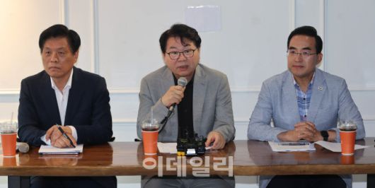 [이데일리 방인권 기자] 이한주 국정기획위원장이 13일 오후 서울 종로구의 한 카페에서 기자간담회를 열고 모두발언을 하고 있다.