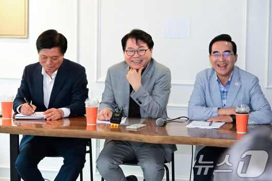 이한주 국정기획위원회 위원장이 13일 서울 종로구 정부서울청사 창성동 별관 인근 카페에서 열린 기자간담회에서 취재진 질의를 들으며 미소 짓고 있다. (공동취재) 2025.7.13/뉴스1 ⓒ News1 김성진 기자 |