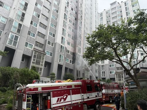 같은 아파트 주민이 연기와 불꽃을 보고 119에 신고했고, 소방당국은 낮 12시 42분께 대응 1단계를 발령하고 진화와 인명 구조에 나섰다.
