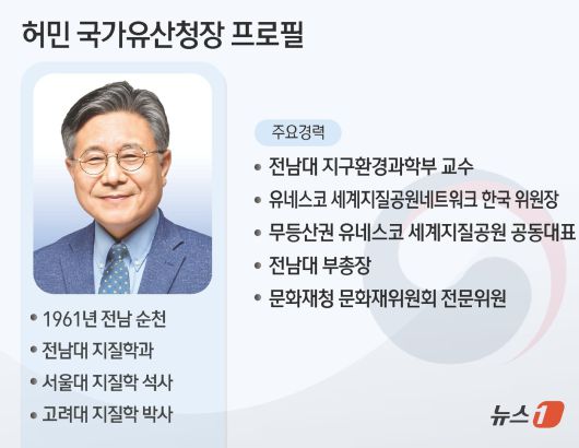 (서울=뉴스1) 김초희 디자이너 = 이재명 대통령의 주요 정책자문역이자 '공룡 박사'로 유명한 허민(64) 전남대 지구환경과학부 교수가 국가유산청장에 임명됐다. 허 신임 청장은 21대 대선에서 이재명 후보의 정책자문 기구로 출범했던 ‘성장과 통합’에서 유종일 전 한국개발연구원(KDI) 국제정책대학원장과 공동 상임 대표를 맡은 바 있다.
