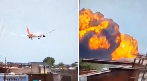 에어인디아 여객기가 지난달 12일 인도 서부 구자라트주 아마다바드 공항 근처에서 추락했다. 사진은 현장에서 목격된 사고 순간. 엑스 캡처 |