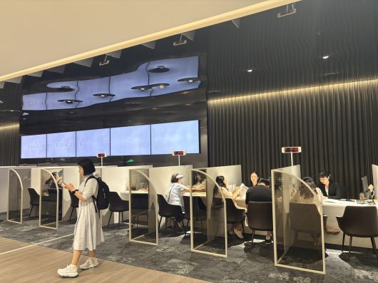 지난달 ‘리버센트 푸르지오 위브’ 견본주택 방문객들이 청약 상담을 받는 모습. 정주원 기자 |