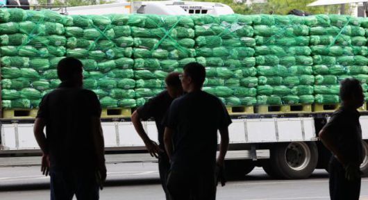 13일 서울 송파구 가락동 농수산물도매시장에서 배추를 실은 트럭이 경매를 위해 대기해 있는 모습. [사진=연합뉴스] |