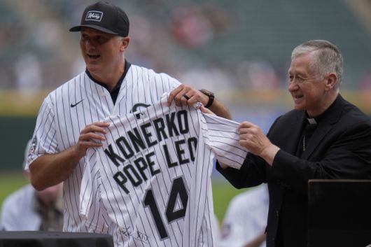 AP통신 등 외신에 따르면 미국 시카고 교구장 블레이스 수피치 추기경은 13일(한국시간) 시카고 화이트삭스와 클리블랜드 가디언스의 경기가 열린 미국 일리노이주 시카고 개런티드 레이트필드를 방문해 2005년 월드시리즈 우승의 주역인 폴 코너코에서 레오 14세의 사인이 담긴 기념 유니폼을 증정했다.