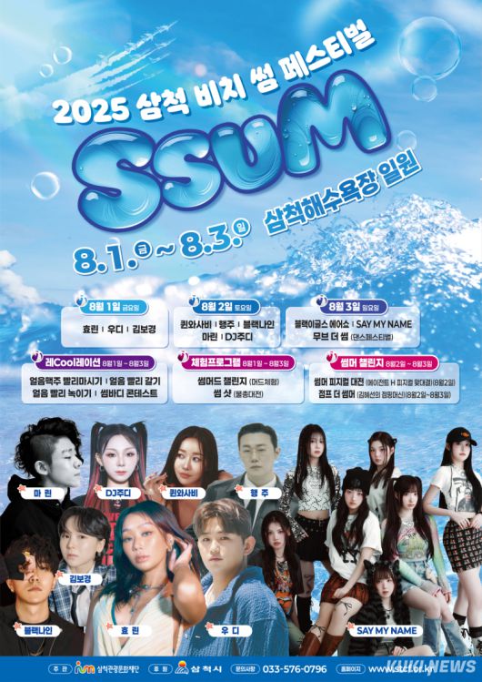13일 삼척시에 따르면 이번 축제는 세대별 맞춤 공연과 관객 참여형 프로그램을 아우르며 여름 바다를 무대로 펼쳐진다. 1일에는 가수 효린, 우디, 김보경이 여름 감성 무대를 꾸미고, 2일에는 래퍼 행주, 블랙나인, 마린, 퀸와사비가 강렬한 퍼포먼스를 선보인다. 이후 DJ 주디가 EDM 파티로 해변의 밤을 뜨겁게 달굴 예정이다.