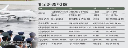 우리 군은 '조건에 기초한 전작권 전환'을 위해 감시정찰 전력 확보를 가속화하고 있다. 그러나 현시점에서는 자산·분석 능력 모두 부족하다는 평가가 지배적이다. 우리 군의 전력화된 군사정찰위성은 4기로, 북한을 2시간 간격으로 살필 수 있다. 실시간 감시에는 한계가 있다. 이에 따라 미군의 감시정찰 자산이 한·미연합방위체계의 핵심적인 역할을 하고 있다. 전작권 전환이 이뤄질 경우 미군 감시정찰 자산의 국내 배정이 해제될 수 있어 우리 군의 감시 능력에 공백이 생길 수 있다는 우려가 나온다 .