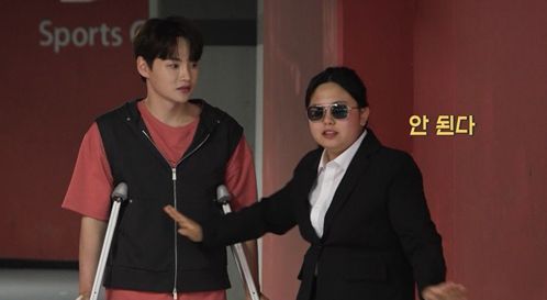 이어 효정의 밀착 케어가 시작됐다. 효정은 직접 운전을 하는 것은 물론, 서진의 케어를 위해 목베개와 무전기, 보양을 위한 곰국 등 다양한 아이템을 준비했다. 특히 효정은 인파 속에서도 서진의 발이 밟히지 않도록 야광줄, 방울 등으로 화려하게 장식한 깁스 신발을 직접 제작하고 준비해 눈길을 모았다.