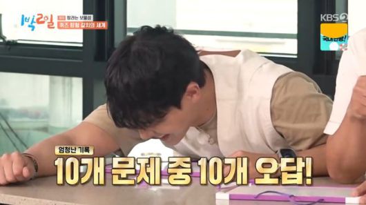 용암 동굴 체험 후 멤버들은 모은 금화(17개)로 점심을 구매해 먹었다. 하지만 메인 메뉴 갈치조림, 구이 등은 금화 300개에 달했기에 제작진은 동물 퀴즈를 통해 상위 3명에게만 이를 제공하기로 했다. 다양한 동물 퀴즈가 나온 가운데 이준은 무려 10문제 연속 오답으로 놀라움을 자아냈고, 급기야 OX퀴즈에서는 이준이 쓴 답을 보고 멤버들이 모두 반대로 쓰는 진풍경이 벌어지기도 했다. 김종민은 “상식도 없고 운도 없다”, “18년 동안 0점은 처음이다”라고 놀렸고, 마지막 문제에서 이준을 믿었던 조세호는 발등을 찍히며 따가운 눈총을 보냈다. 이준은 갈치 1접시가 걸린 보너스 게임마저도 틀리며 11문제 연속 오답이라는 신기록을 썼다.