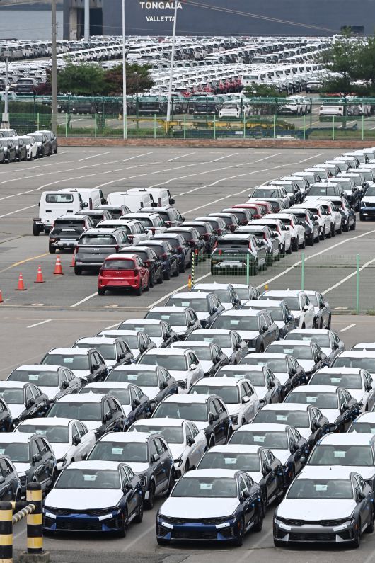 경기 평택항 자동차 전용부두에 수출용 차량이 세워져 있는 모습. 뉴시스 |