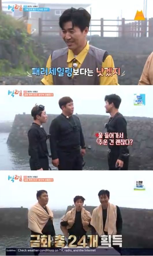 주종현PD는 원래 패러세일링을 하려고 했으나 궂은 날씨로 인해 바닷속 보물찾기로 변경해서 진행한다고 설명했다.