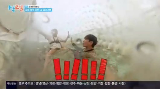 조세호와 이준은 물이 채워진 공에 들어가면서 드럼세탁기 속에 들어간 기분으로 도착지점까지 굴러내려왔다.