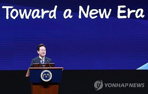 (서울=연합뉴스) 홍해인 기자 = 이재명 대통령이 13일 서울 강남구 코엑스에서 열린 2025 세계정치학회(IPSA) 서울총회 개막식에서 연설하고 있다. 2025.7.13 [대통령실통신사진기자단]