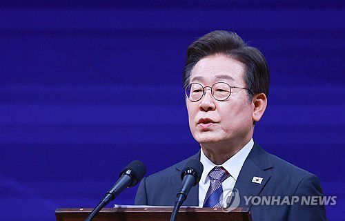 (서울=연합뉴스) 홍해인 기자 = 이재명 대통령이 13일 서울 강남구 코엑스에서 열린 2025 세계정치학회(IPSA) 서울총회 개막식에서 연설하고 있다. 2025.7.13 [대통령실통신사진기자단]