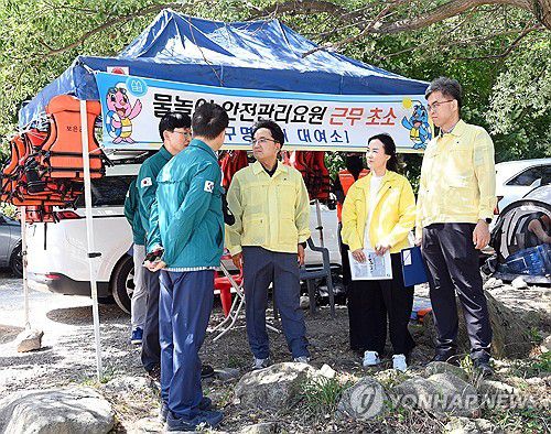 (서울=연합뉴스) 김광용 행정안전부 재난안전관리본부장이 지난 12일 충북 보은군 서원계곡을 방문해 안전관리 요원 배치, 안전시설 관리 등 물놀이 안전관리 실태를 점검하고 있다. 2025.7.13 [행정안전부 제공. 재판매 및 DB금지]