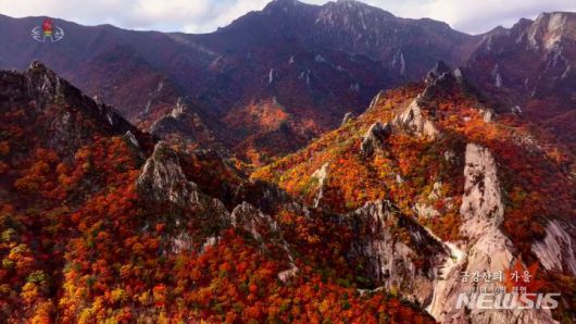 [서울=뉴시스] 북한 조선중앙TV가 20일 가을 단풍으로 물든 10월 중순의 금강산의 모습을 보도했다. (사진=조선중앙TV 캡처) 2023.10.20. photo@newsis.com *재판매 및 DB 금지 |