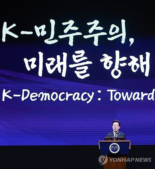 (서울=연합뉴스) 홍해인 기자 = 이재명 대통령이 13일 서울 강남구 코엑스에서 열린 2025 세계정치학회(IPSA) 서울총회 개막식에서 연설하고 있다. 2025.7.13 [대통령실통신사진기자단]