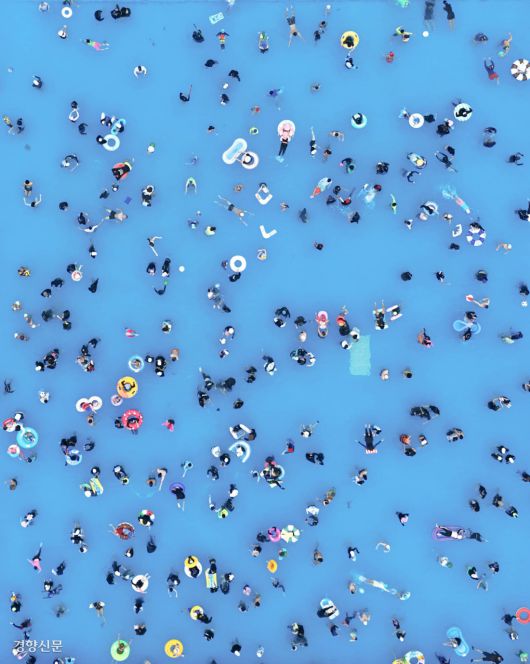 13일 서울 여의도 한강공원 수영장을 찾은 시민들이 물속에서 더위를 식히고 있다. 이날 전국 대부분 지역에 비가 내리면서 폭염의 기세는 한풀 꺾였다. 기상청은 전국 각지에 내려졌던 폭염특보를 모두 해제했다.