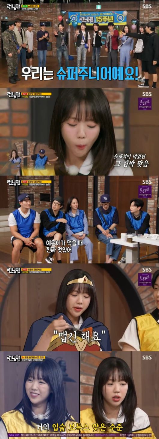 결국 유재석은 “아니 왜 아무것도 안 해! 밥만 먹어 맨날! 아니 지예은 좀 올라가려고 해야지!”라며 폭발했다. 다음 게임에선 김종국·규현이 1등, 송지효·이특은 2등을 차지했다.