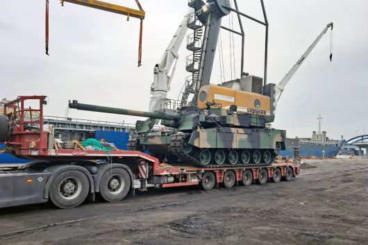 폴란드 그드니아 항구에 도착한 폴란드 K2 전차 모습. /현대로템 제공 |