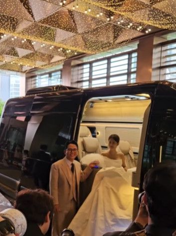이날 김준호, 김지민의 지인은 개인 계정을 통해 이들의 결혼식 현장을 전해 눈길을 끌었다. 차에서 내리는 김지민을 에스코트하는 김준호의 모습이 시선을 모았다. 김준호는 베이지색 슈트를 차려입었고, 김지민은 어깨를 드러낸 순백의 드레스를 입었다.