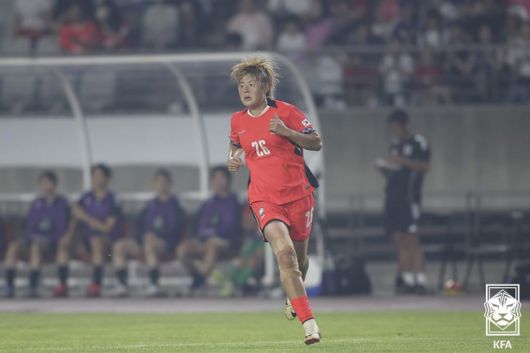 한국이 고삐를 당겼다. 전반 43분 우측면을 허물고 이금민에게 크로스 찬스가 왔다. 크로스가 다소 길었다. 남은 시간 양 팀의 득점은 없었고 전반전은 일본이 1-0으로 앞선 채 종료됐다.
