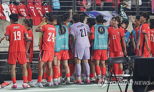 (화성=연합뉴스) 김성민 기자 = 13일 경기도 화성종합경기타운 주경기장에서 열린 2025년 동아시아축구연맹(EAFF) E-1 챔피언십(동아시안컵) 여자부 대한민국과 일본의 경기. 한국 선수들이 인사하고 있다. 2025.7.13
