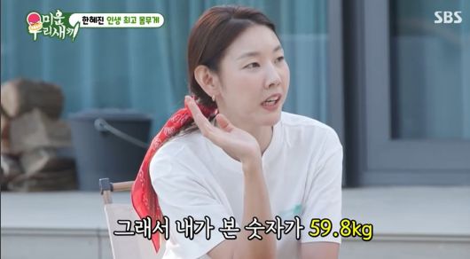 이날 방송에서 한혜진은 체중에 대해 "자신마다 편안한 체중이 있다. 나는 비시즌, 시즌 사이(몸무게)가 편안하다"라고 말했다.
