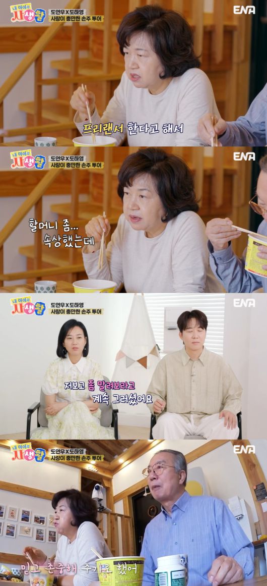 또 연우는 "할머니는 아빠 때문에 속상한 적이 있었냐"라고 묻자, 할머니는 "프리랜서 한다고 해서 할머니는 좀 속상했다"라며 2021년 도경완이 KBS를 퇴사한 뒤 프리랜서 선언을 했던 때를 회상했다.