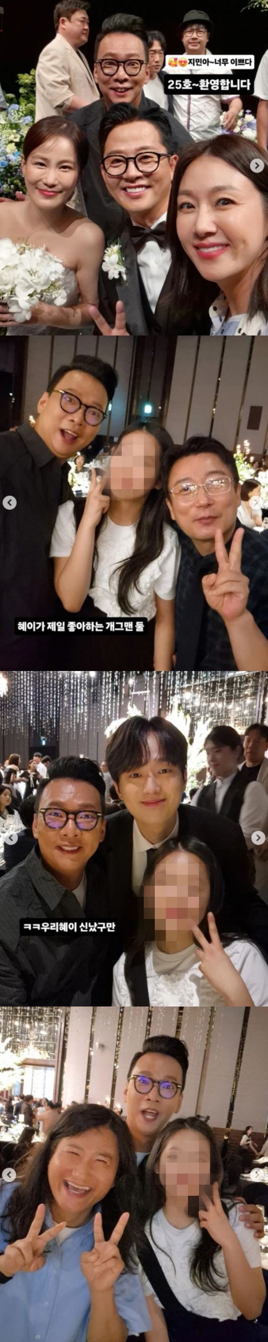 [OSEN=박하영 기자] 개그맨 김지혜, 박준형 부부가 딸 혜이 양과 함께 김준호, 김지민 결혼식에 참석해 인증샷을 남겼다.