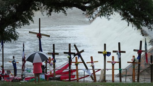 ▲ 13일 캠프 참가 어린이들이 숨진 텍사스 과달루페 강 인근의 희생자 추모비