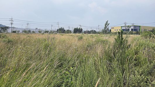 8일 오후 방문한 충남 서천군 장항국가생태산업단지 전경. 사업비 3263억원을 들여 275만㎡규모로 조성됐지만, 가동기업은 24개(가동률 58.5%)에 그친다. 사진은 풀이 무성한 장항산단 미분양 부지 전경. 오삼권 기자 |