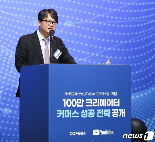 이재석 카페24 대표가 서울 서초구 양재동 엘타워에서 유튜브와의 쇼핑 파트너십 기념으로 개최한 ‘100만 크리에이터 커머스 성공 전략 공개’ 세미나에서 인사말을 하고 있다.(카페24 제공) 2022.12.20/뉴스1 |
