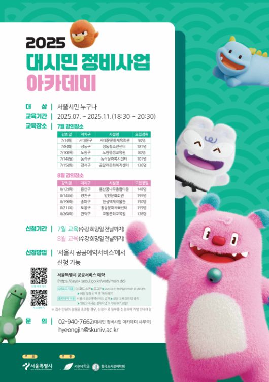 서울시는 시민들의 정비사업 이해도를 높이기 위해 '2025년 대시민 정비사업 아카데미'를 7월부터 11월까지 25개 자치구에서 운영한다고 14일 밝혔다.