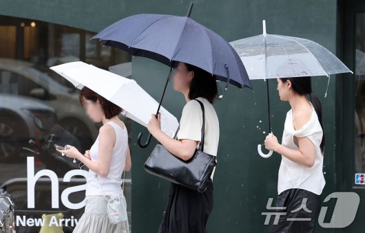 13일 서울 종로구 거리에서 시민들이 우산을 쓴 채 거리를 거닐고 있다. 2025.7.13/뉴스1 ⓒ News1 김성진 기자 |