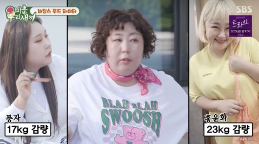 17kg을 감량한 풍자는 “요즘 쫓기는 느낌이다. 홍윤화도 23kg을 뺐다”며 다이어트 고충을 토로했고, 신기루는 “이번 여름 목표는 7kg 감량”이라며 의지를 불태웠다.