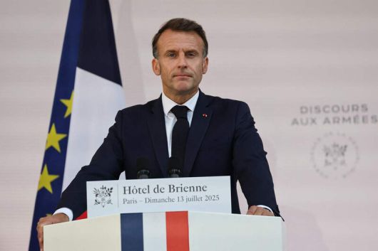13일(현지시각) 에마뉘엘 마크롱 프랑스 대통령이 프랑스 국방부에서 연설을 하고 있다. AFP연합뉴스