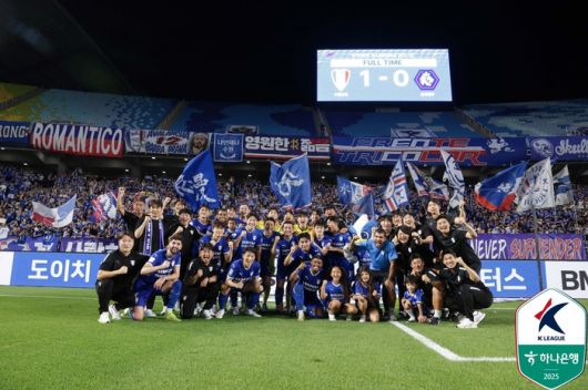 12일 충북 청주와의 홈 경기에서 승리한 뒤 기뻐하는 수원 삼성 선수들.제공 | 한국프로축구연맹 |