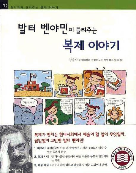 사진의 탄생과 원본성에 대한 이야기를 풀어낸 철학서. 발터 벤야민의 에세이 『기술복제시대의 예술작품』의 핵심 내용을 청소년의 눈높이로 재구성했다. 주인공이 가정과 학교에서 경험하는 여러 사건을 매개로 대중 예술, 복제 시대, 아우라 등 현대 대중문화와 사진 예술을 이해하는 데 중요한 여러 개념을 배울 수 있다.