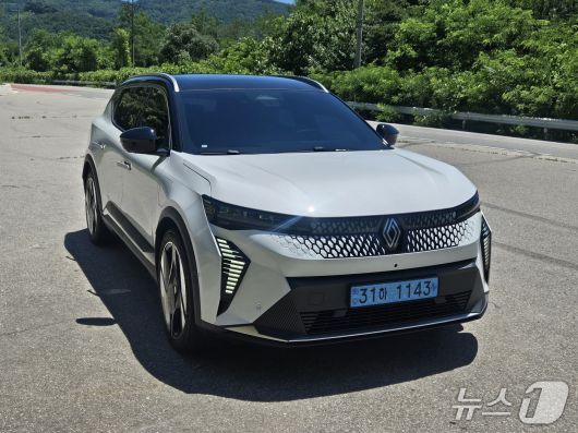 10일 강원 춘천 가락재 고갯길에서 촬영한 르노코리아의 준중형 전기 스포츠유틸리티차(SUV) '세닉 E-테크(tech) 100% 일렉트릭'의 모습. 2025.07.10/뉴스1 김성식 기자 |