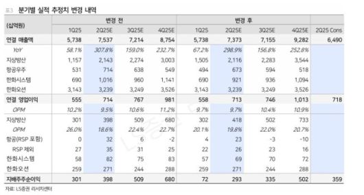 LS증권은 한화에어로스페이스가 올해 2분기 연결 기준 매출액 7조3738억 원, 영업이익 7130억 원을 기록할 것으로 전망했다. 전년 동기 대비 각각 298%, 99% 증가한 수준이다. 매출은 컨센서스인 6조4904억 원을 웃돌 것으로, 영업이익은 부합할 것으로 봤다.