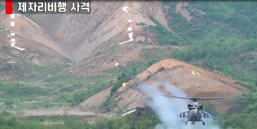 상륙공격헬기 무유도 로켓 사격 장면. 사진 방위사업청 |