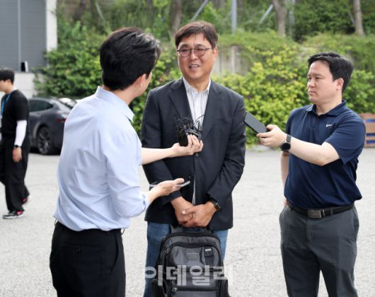 [이데일리 김태형 기자] 최휘영 문화체육관광부 장관 후보자가 14일 오전 서울 종로구 국립현대미술관에 마련된 인사청문회 준비 사무실로 첫 출근하며 취재진에게 소감처을 말하고 있다.