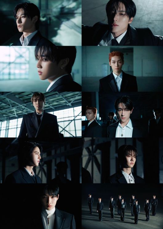 공개된 영상은 강렬한 음악과 함께 등장한 더보이즈 멤버들의 모습으로 시작된다. 레더 포인트로 스타일리시함을 살린 블랙 수트를 입고, 정적인 분위기 속 시크한 표정과 눈빛으로 정면을 응시하며 보는 이들의 시선을 단숨에 사로잡는다.