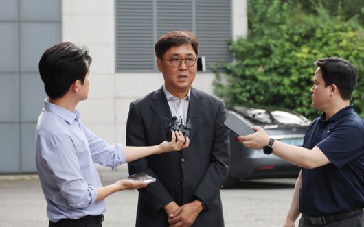 최휘영 문화체육관광부 장관 후보자가 14일 오전 인사청문회 준비 사무실이 마련된 서울 종로구 국립현대미술관 서울 사무동으로 출근하며 기자들의 질문에 답하고 있다. 김혜윤 기자 unique@hani.co.kr |
