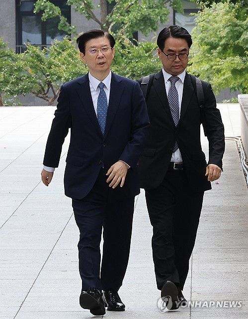 (서울=연합뉴스) 이진욱 기자 = 박종준 전 대통령경호처장이 14일 내란특검 조사를 받기 위해 특검 조사실이 마련된 서울고검으로 향하고 있다. 2025.7.14