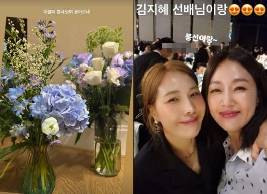 또 신봉선은 강재준·이은형 부부의 아들 현조 군과 송은이, 김지혜 등 동료들과의 인증샷도 전했고, "이럴 때 뽐내보며 꽂아보네"라면서 결혼식장에서 가져온 꽃을 예쁘게 꽂아놓은 모습도 공개했다.
