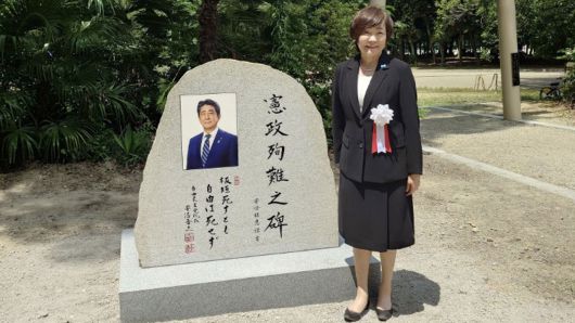 ▲ 오사카고코쿠신사에 세워진 아베 전 총리 기념비