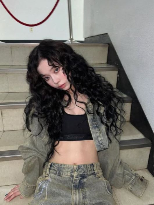 특히 볼륨감 있는 웨이브 컬 헤어스타일은 캐주얼하면서도 개성 넘치는 분위기를 연출했으며, 촬영 장소는 방송국 내부 계단으로 보인다. 자연스러운 포즈 속에서도 스타일리시한 아우라가 느껴져 눈길을 끌었다.