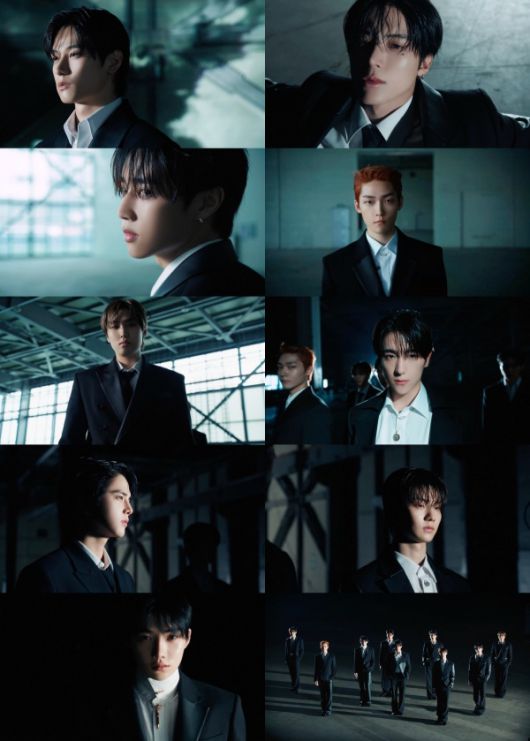 공개된 영상은 강렬한 음악과 함께 등장한 더보이즈 멤버들의 모습으로 시작됐다. 이들은 레더 포인트로 스타일리시함을 살린 블랙 슈트를 입고, 정적인 분위기 속 시크한 표정과 눈빛으로 정면을 응시했다.