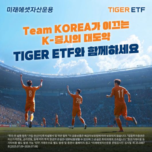 성태경 미래에셋자산운용 ETF연금플랫폼 대표는 "이번 캠페인은 TIGER ETF가 대한민국 성장 산업의 주역들과 함께 투자자의 자부심을 북돋고, K-성장에 대한 긍정적 경험을 쌓을 수 있도록 기획했다"며 "팀 코리아 ETF는 단순한 투자 수단을 넘어, 투자자들이 시장을 보다 쉽고 전략적으로 접근할 수 있는 명확한 투자 솔루션이 될 것"이라고 말했다.